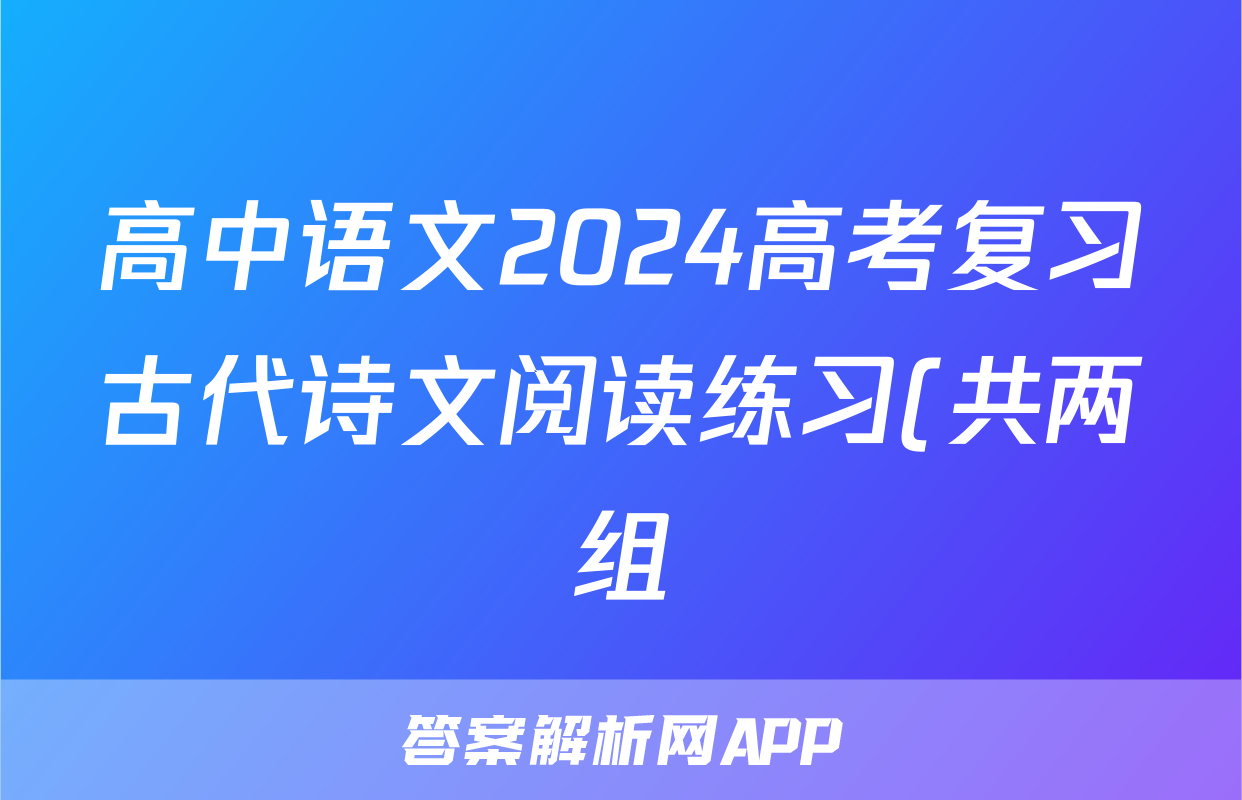 高中语文2024高考复习古代诗文阅读练习(共两组)正在持续更新,目前2025衡水名师卷答案网为大家整理了相关试题及答案,供大家查缺补漏,高效提升成绩。