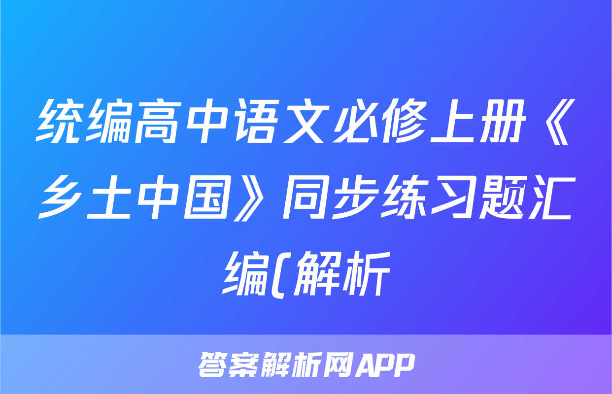 统编高中语文必修上册《乡土中国》同步练习题汇编(解析)正在持续更新,目前2025衡水名师卷答案网为大家整理了相关试题及答案,供大家查缺补漏,高效提升成绩。
