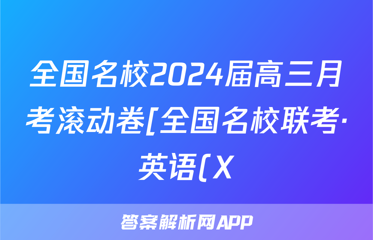 全国名校2024届高三月考滚动卷[全国名校联考·英语(X)](五)答案试卷答案答案正在持续更新,目前2025衡水名师卷答案网为大家整理了相关试题及答案,供大家查缺补漏,高效提升成绩。
