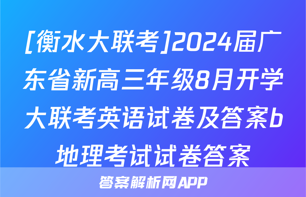 [衡水大联考]2024届广东省新高三年级8月开学大联考英语试卷及答案b地理考试试卷答案