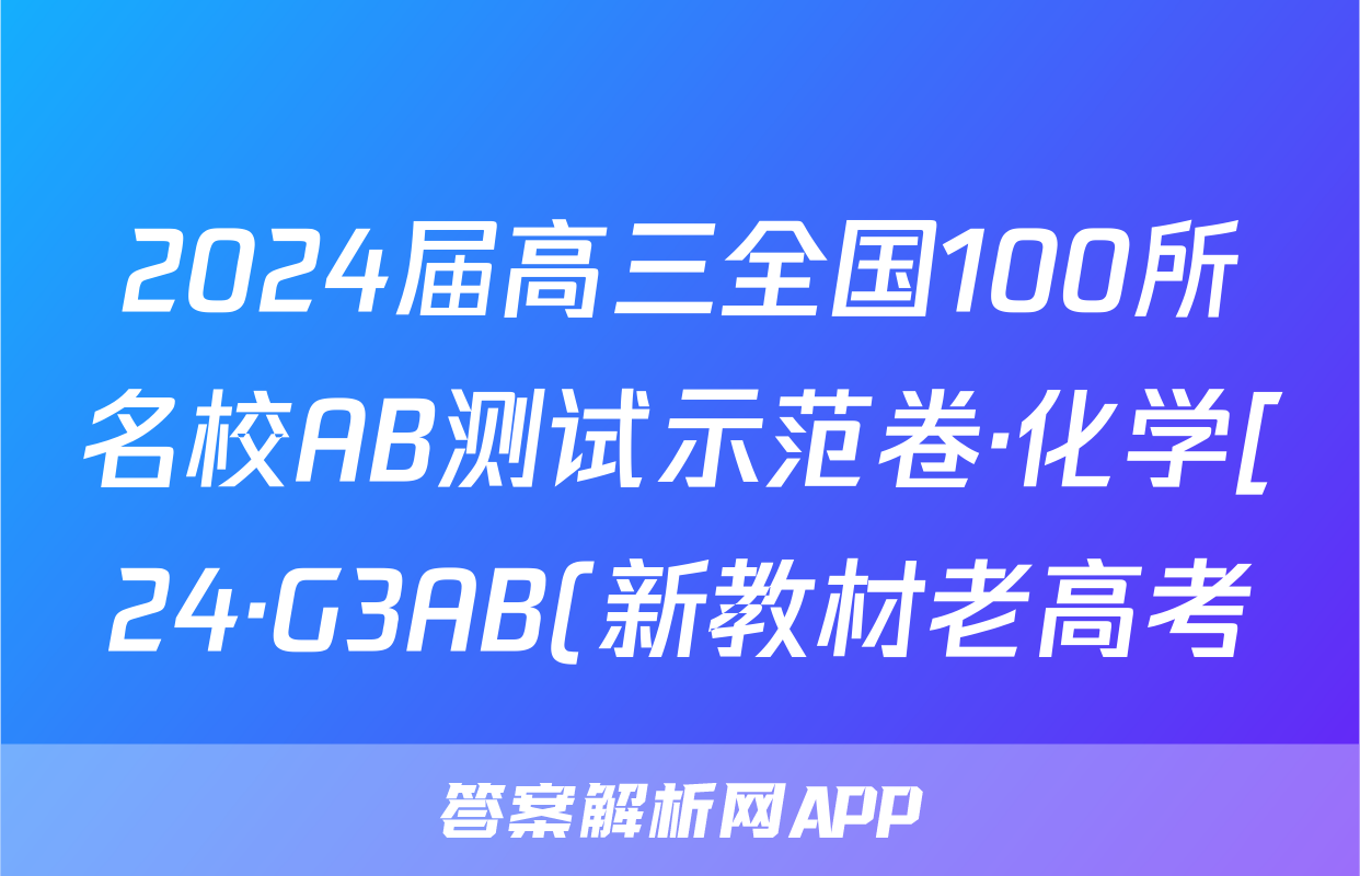 2024届高三全国100所名校AB测试示范卷·化学[24·G3AB(新教材老高考)·化学-SJB-必考-GX]八试题正在持续更新,目前2025衡水名师卷答案网为大家整理了相关试题及答案,供大家查缺补漏,高效提升成绩。