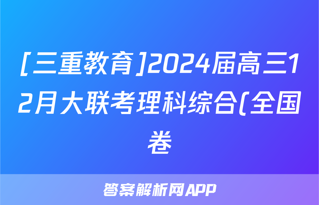 [三重教育]2024届高三12月大联考理科综合(全国卷)试题正在持续更新,目前2025衡水名师卷答案网为大家整理了相关试题及答案,供大家查缺补漏,高效提升成绩。