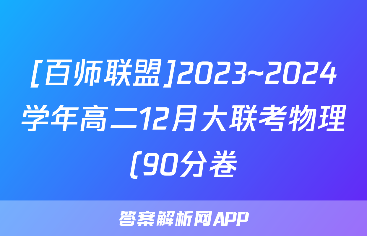 [百师联盟]2023~2024学年高二12月大联考物理(90分卷)试题正在持续更新,目前2025衡水名师卷答案网为大家整理了相关试题及答案,供大家查缺补漏,高效提升成绩。