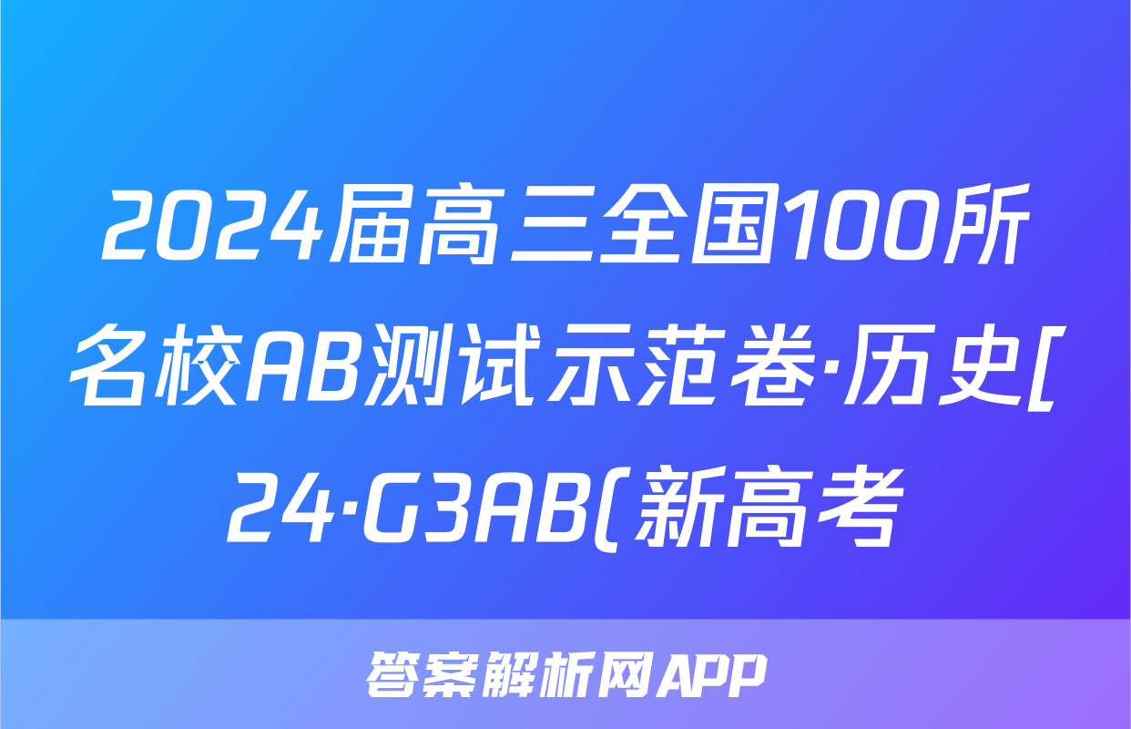 2024届高三全国100所名校AB测试示范卷·历史[24·G3AB(新高考)·历史-R-必考-HUB]七试题正在持续更新,目前2025衡水名师卷答案网为大家整理了相关试题及答案,供大家查缺补漏,高效提升成绩。