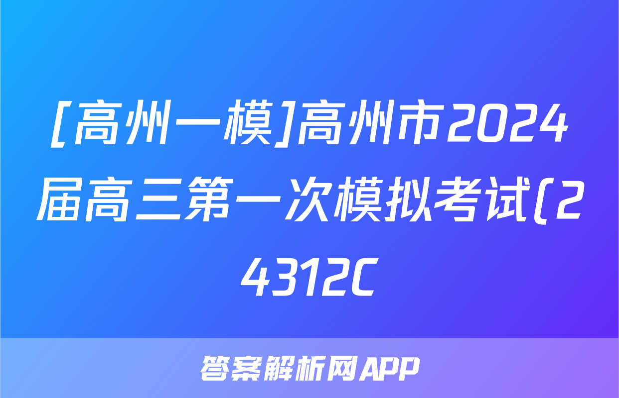[高州一模]高州市2024届高三第一次模拟考试(24312C)英语试题正在持续更新,目前2025衡水名师卷答案网为大家整理了相关试题及答案,供大家查缺补漏,高效提升成绩。