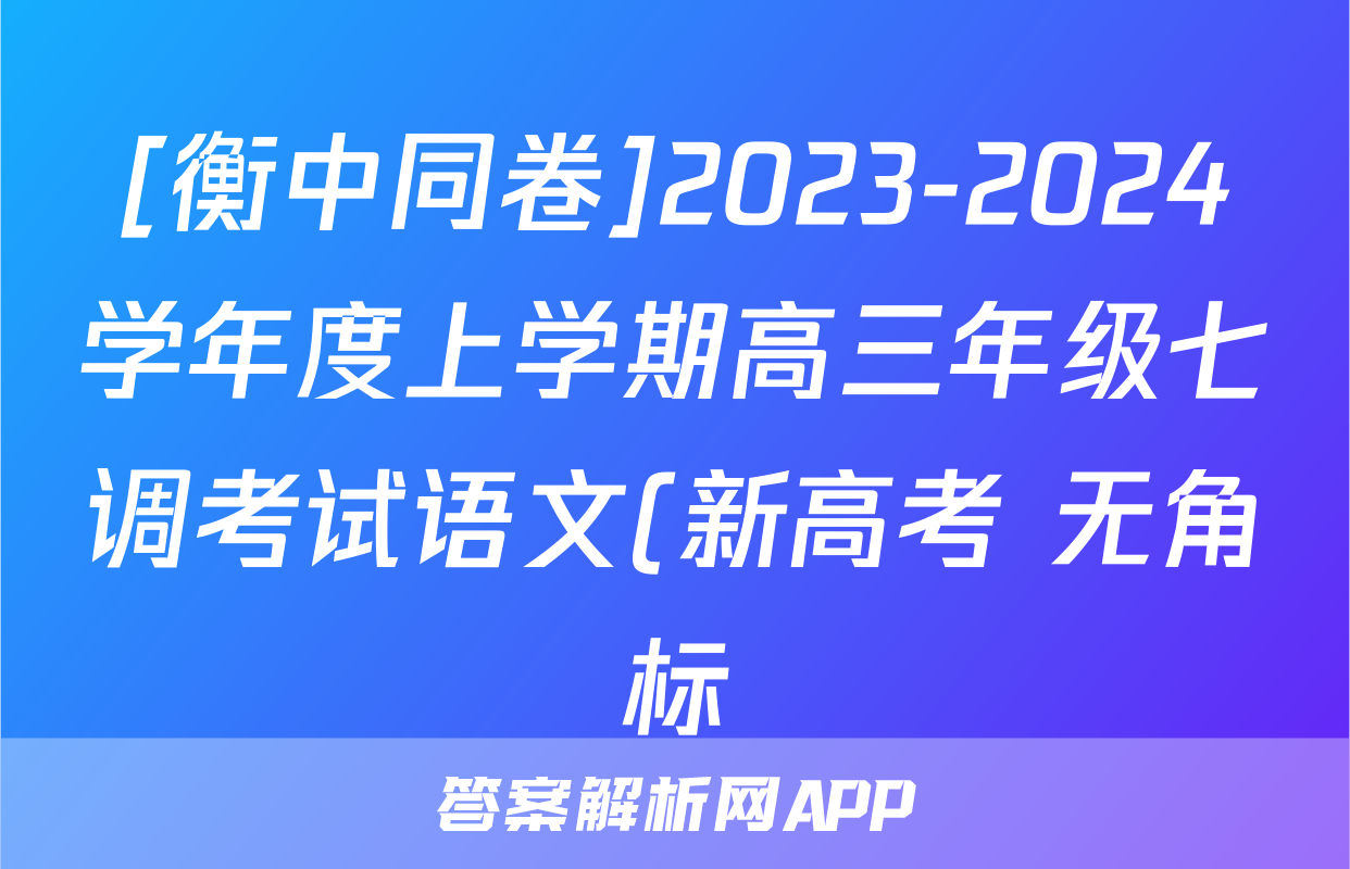 [衡中同卷]2023-2024学年度上学期高三年级七调考试语文(新高考 无角标)试题正在持续更新,目前2025衡水名师卷答案网为大家整理了相关试题及答案,供大家查缺补漏,高效提升成绩。