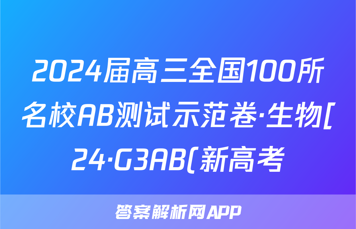 2024届高三全国100所名校AB测试示范卷·生物[24·G3AB(新高考)·生物-R-必考-HUB]六试题正在持续更新,目前2025衡水名师卷答案网为大家整理了相关试题及答案,供大家查缺补漏,高效提升成绩。