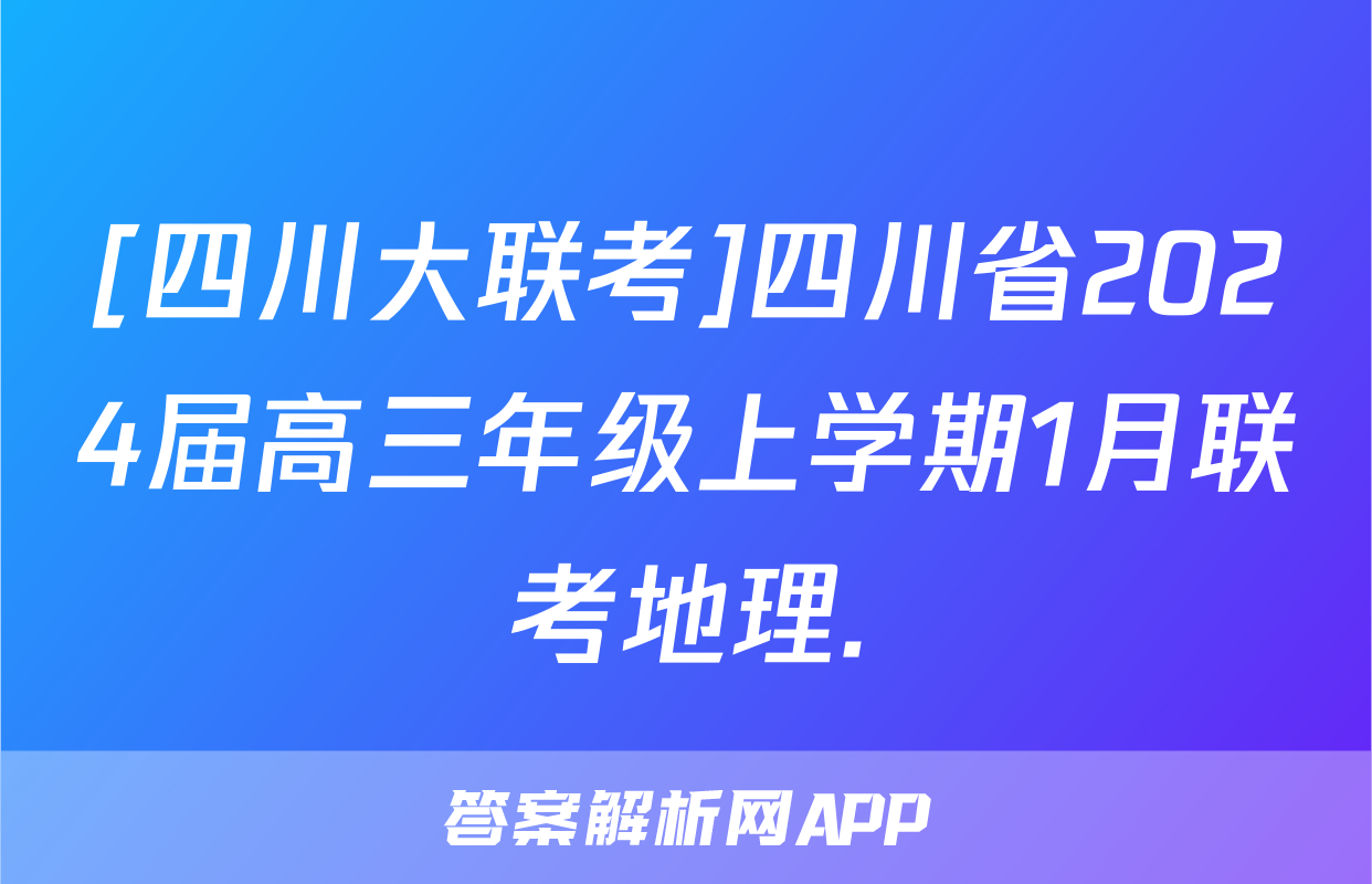 [四川大联考]四川省2024届高三年级上学期1月联考地理.正在持续更新,目前2025衡水名师卷答案网为大家整理了相关试题及答案,供大家查缺补漏,高效提升成绩。