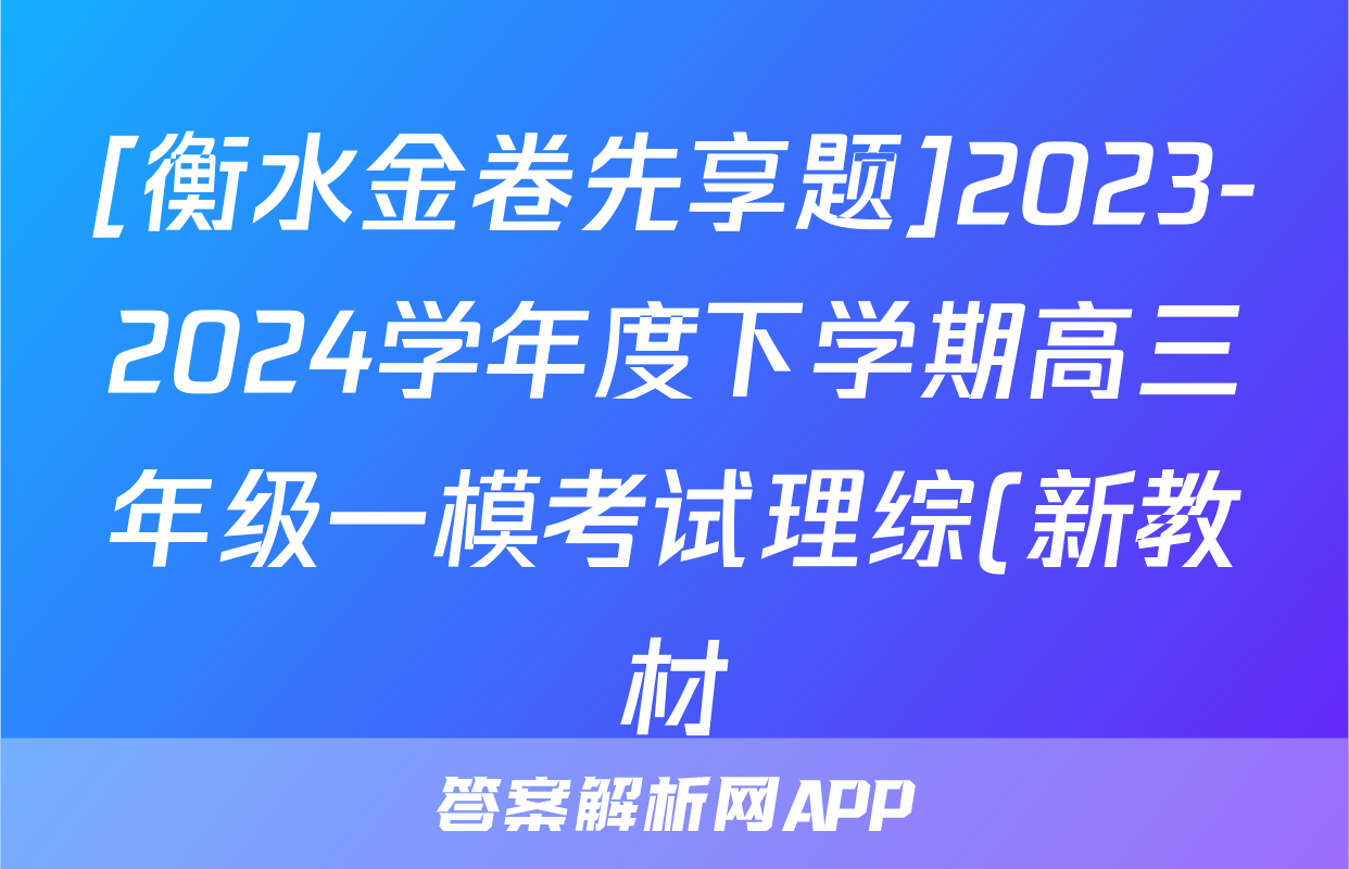 [衡水金卷先享题]2023-2024学年度下学期高三年级一模考试理综(新教材)答案正在持续更新,目前2025衡水名师卷答案网为大家整理了相关试题及答案,供大家查缺补漏,高效提升成绩。