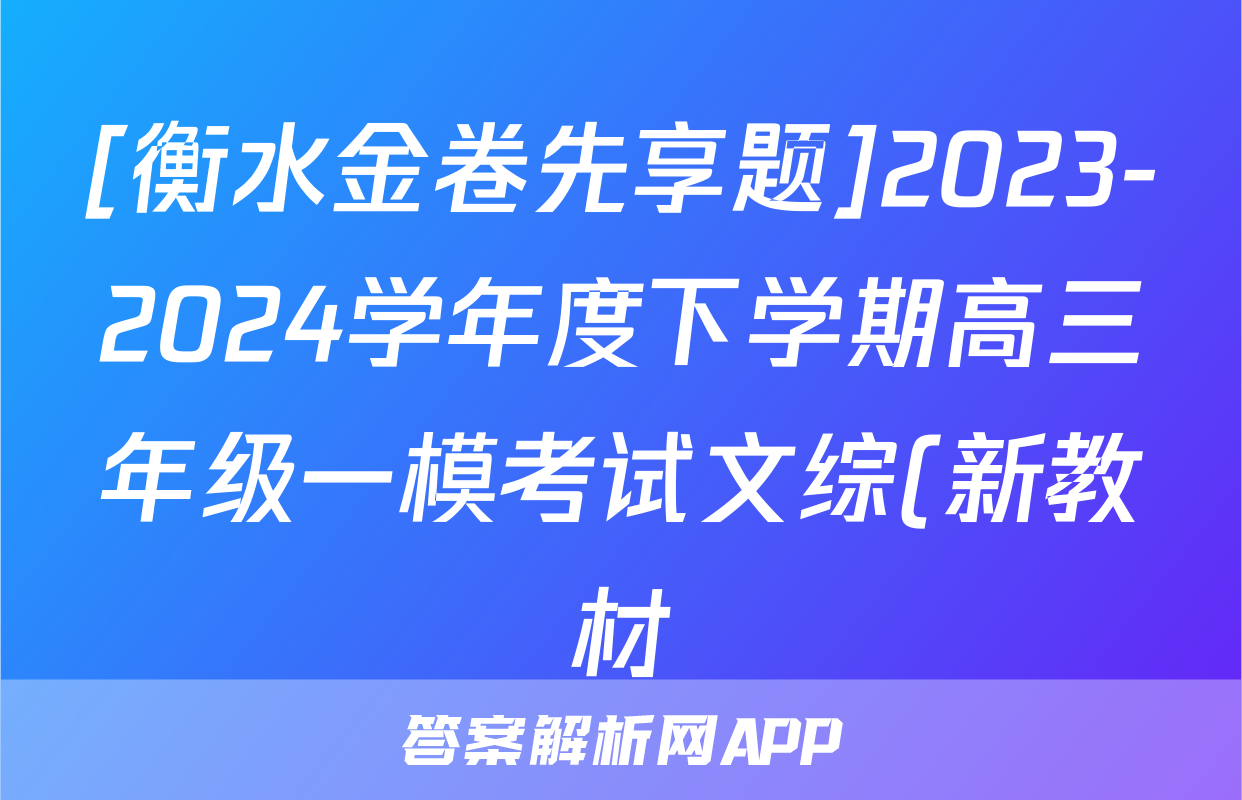 [衡水金卷先享题]2023-2024学年度下学期高三年级一模考试文综(新教材)试题正在持续更新,目前2025衡水名师卷答案网为大家整理了相关试题及答案,供大家查缺补漏,高效提升成绩。