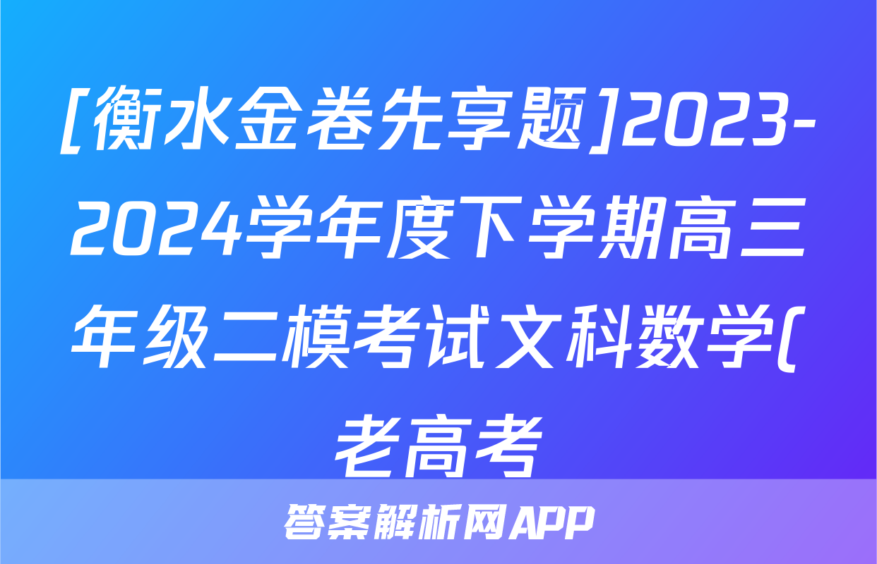 [衡水金卷先享题]2023-2024学年度下学期高三年级二模考试文科数学(老高考)试题正在持续更新,目前2025衡水名师卷答案网为大家整理了相关试题及答案,供大家查缺补漏,高效提升成绩。