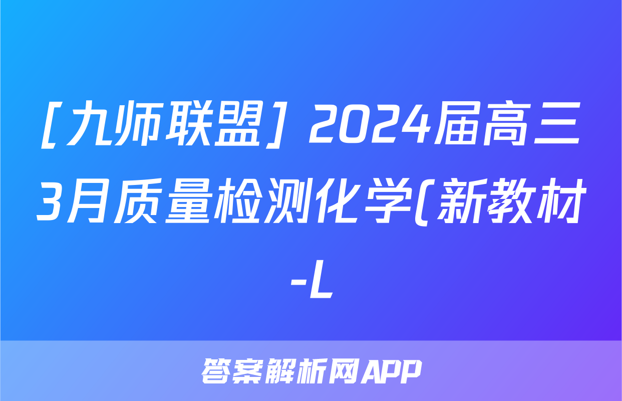 [九师联盟] 2024届高三3月质量检测化学(新教材-L)试题正在持续更新,目前2025衡水名师卷答案网为大家整理了相关试题及答案,供大家查缺补漏,高效提升成绩。