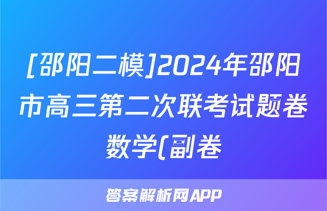 [邵阳二模]2024年邵阳市高三第二次联考试题卷数学(副卷)答案正在持续更新,目前2025衡水名师卷答案网为大家整理了相关试题及答案,供大家查缺补漏,高效提升成绩。