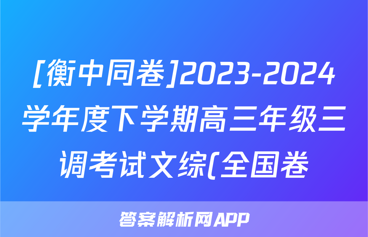 [衡中同卷]2023-2024学年度下学期高三年级三调考试文综(全国卷)试题正在持续更新,目前2025衡水名师卷答案网为大家整理了相关试题及答案,供大家查缺补漏,高效提升成绩。