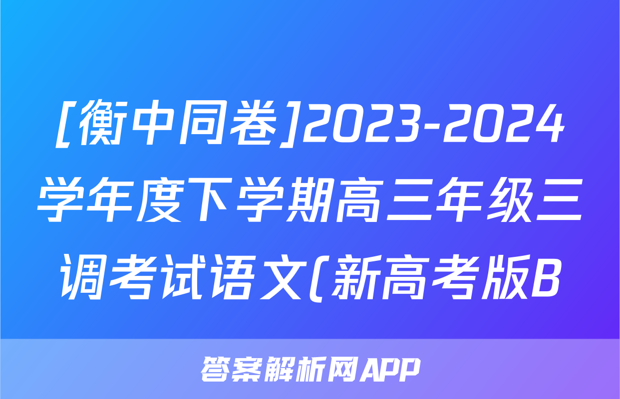 [衡中同卷]2023-2024学年度下学期高三年级三调考试语文(新高考版B)答案正在持续更新,目前2025衡水名师卷答案网为大家整理了相关试题及答案,供大家查缺补漏,高效提升成绩。