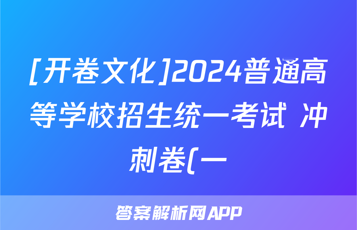 [开卷文化]2024普通高等学校招生统一考试 冲刺卷(一)1历史(A)试题正在持续更新,目前2025衡水名师卷答案网为大家整理了相关试题及答案,供大家查缺补漏,高效提升成绩。