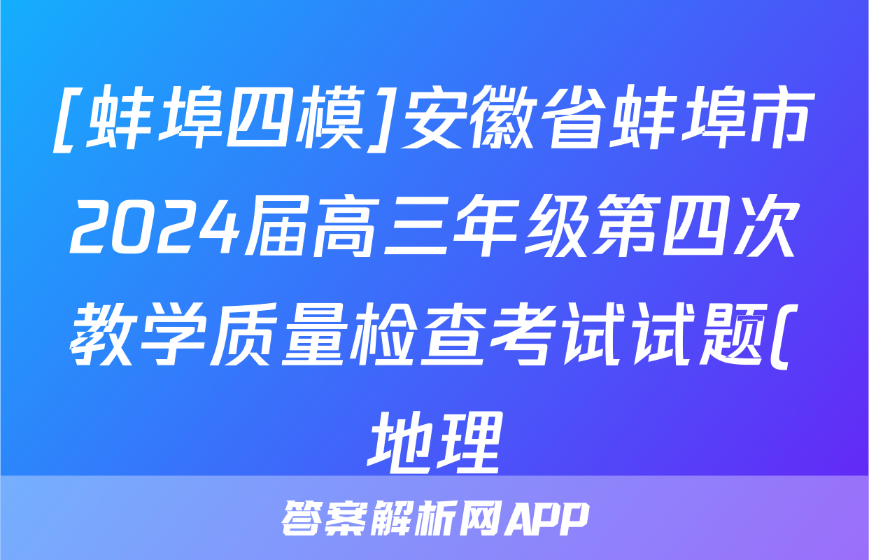 [蚌埠四模]安徽省蚌埠市2024届高三年级第四次教学质量检查考试试题(地理)正在持续更新,目前2025衡水名师卷答案网为大家整理了相关试题及答案,供大家查缺补漏,高效提升成绩。