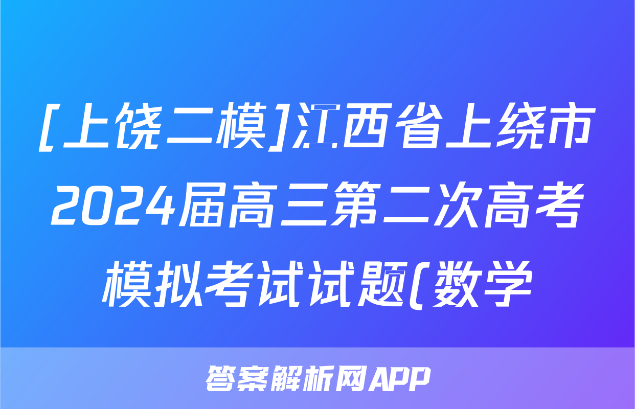 [上饶二模]江西省上绕市2024届高三第二次高考模拟考试试题(数学)正在持续更新,目前2025衡水名师卷答案网为大家整理了相关试题及答案,供大家查缺补漏,高效提升成绩。