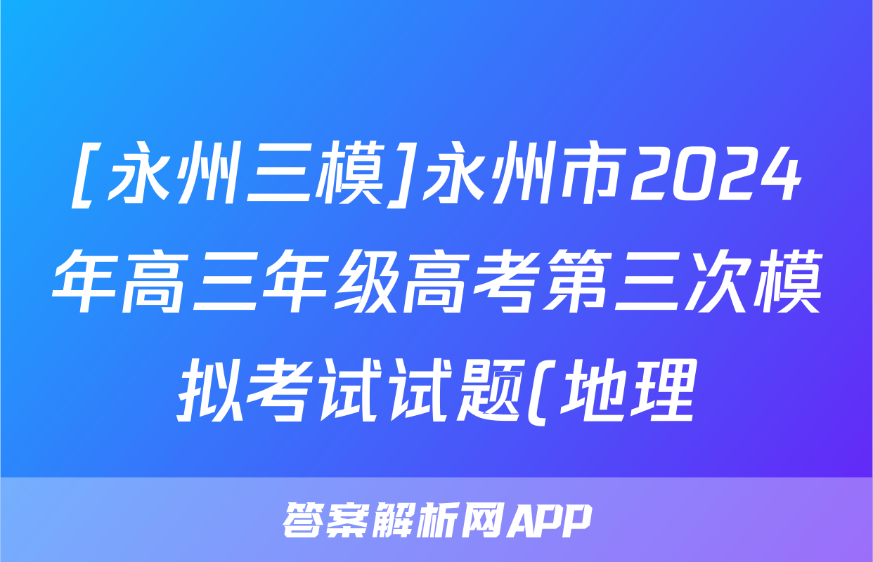 [永州三模]永州市2024年高三年级高考第三次模拟考试试题(地理)正在持续更新,目前2025衡水名师卷答案网为大家整理了相关试题及答案,供大家查缺补漏,高效提升成绩。
