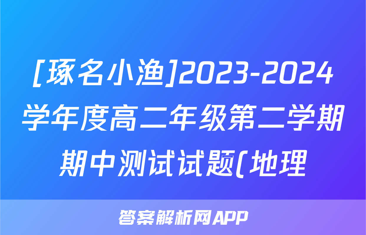 [琢名小渔]2023-2024学年度高二年级第二学期期中测试试题(地理)正在持续更新,目前2025衡水名师卷答案网为大家整理了相关试题及答案,供大家查缺补漏,高效提升成绩。