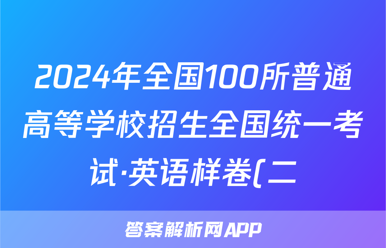 2024年全国100所普通高等学校招生全国统一考试·英语样卷(二)2[24·(新高考)高考样卷·英语·Y]答案正在持续更新,目前2025衡水名师卷答案网为大家整理了相关试题及答案,供大家查缺补漏,高效提升成绩。