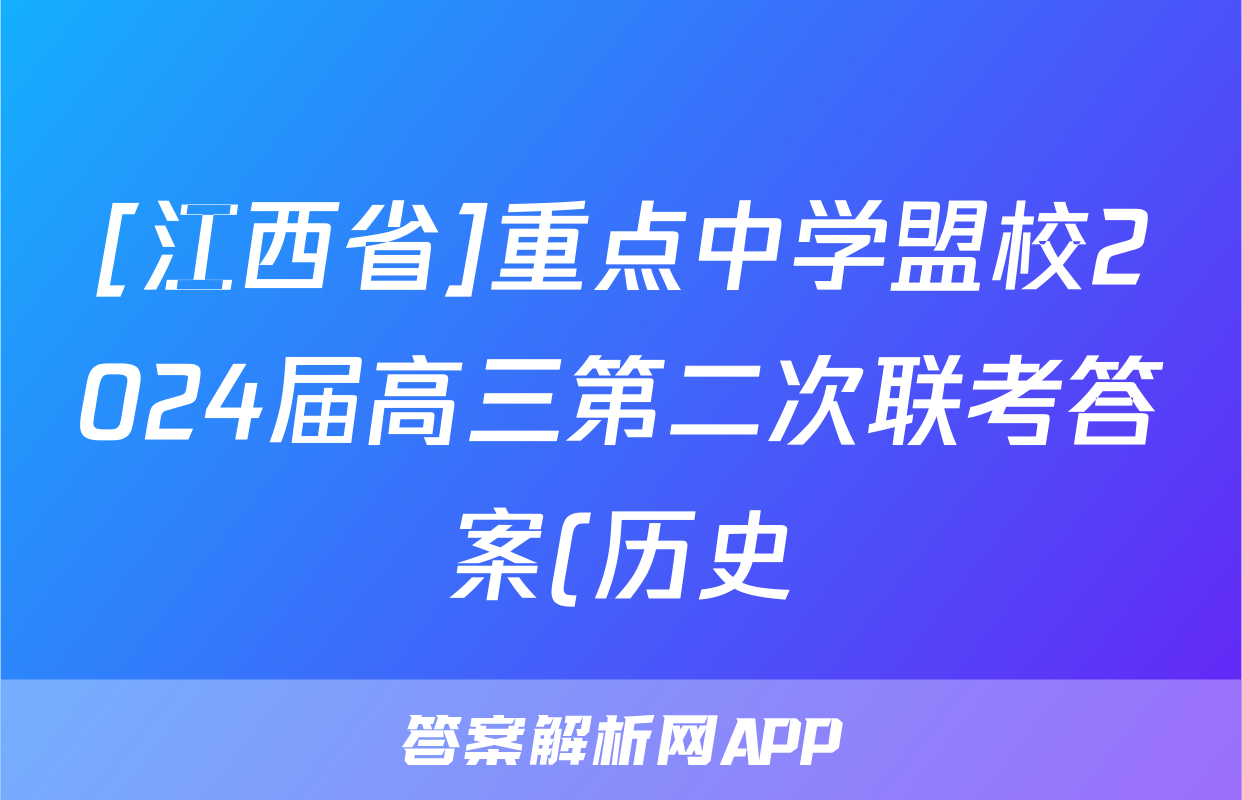[江西省]重点中学盟校2024届高三第二次联考答案(历史)正在持续更新,目前2025衡水名师卷答案网为大家整理了相关试题及答案,供大家查缺补漏,高效提升成绩。