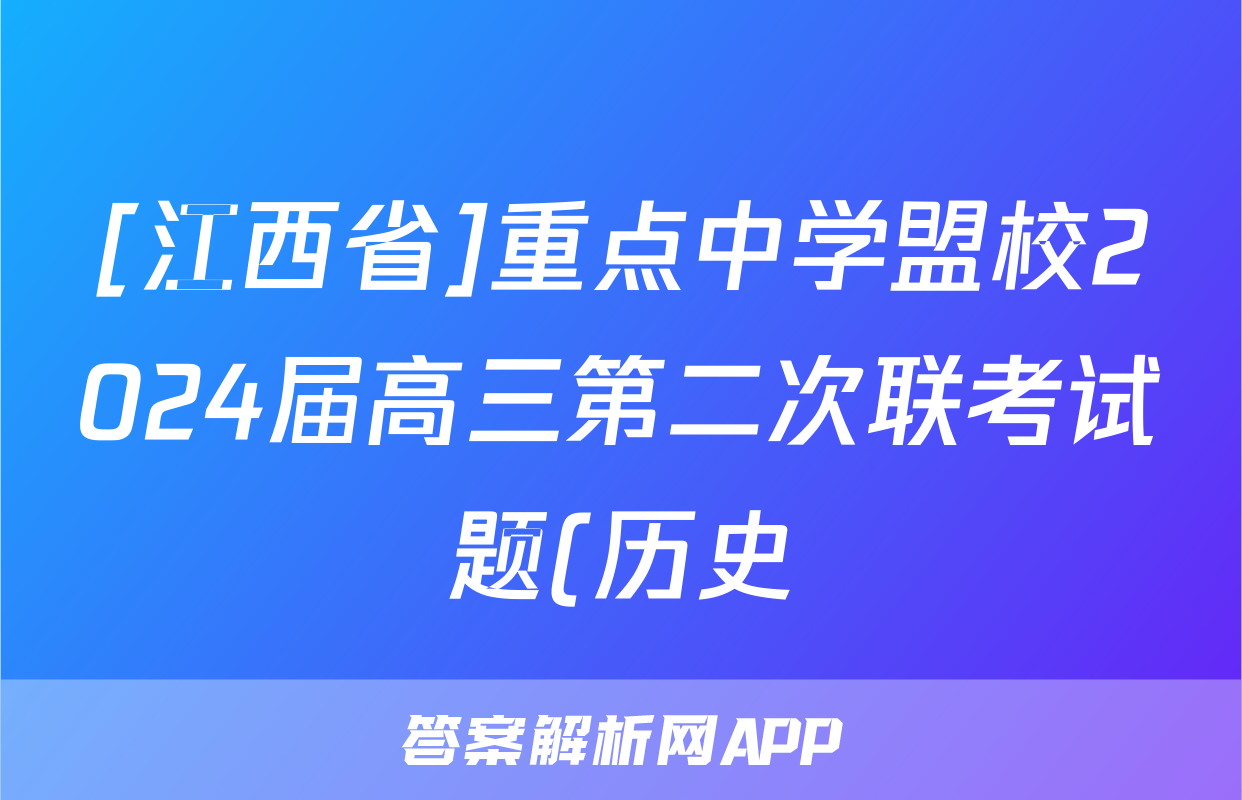 [江西省]重点中学盟校2024届高三第二次联考试题(历史)正在持续更新,目前2025衡水名师卷答案网为大家整理了相关试题及答案,供大家查缺补漏,高效提升成绩。