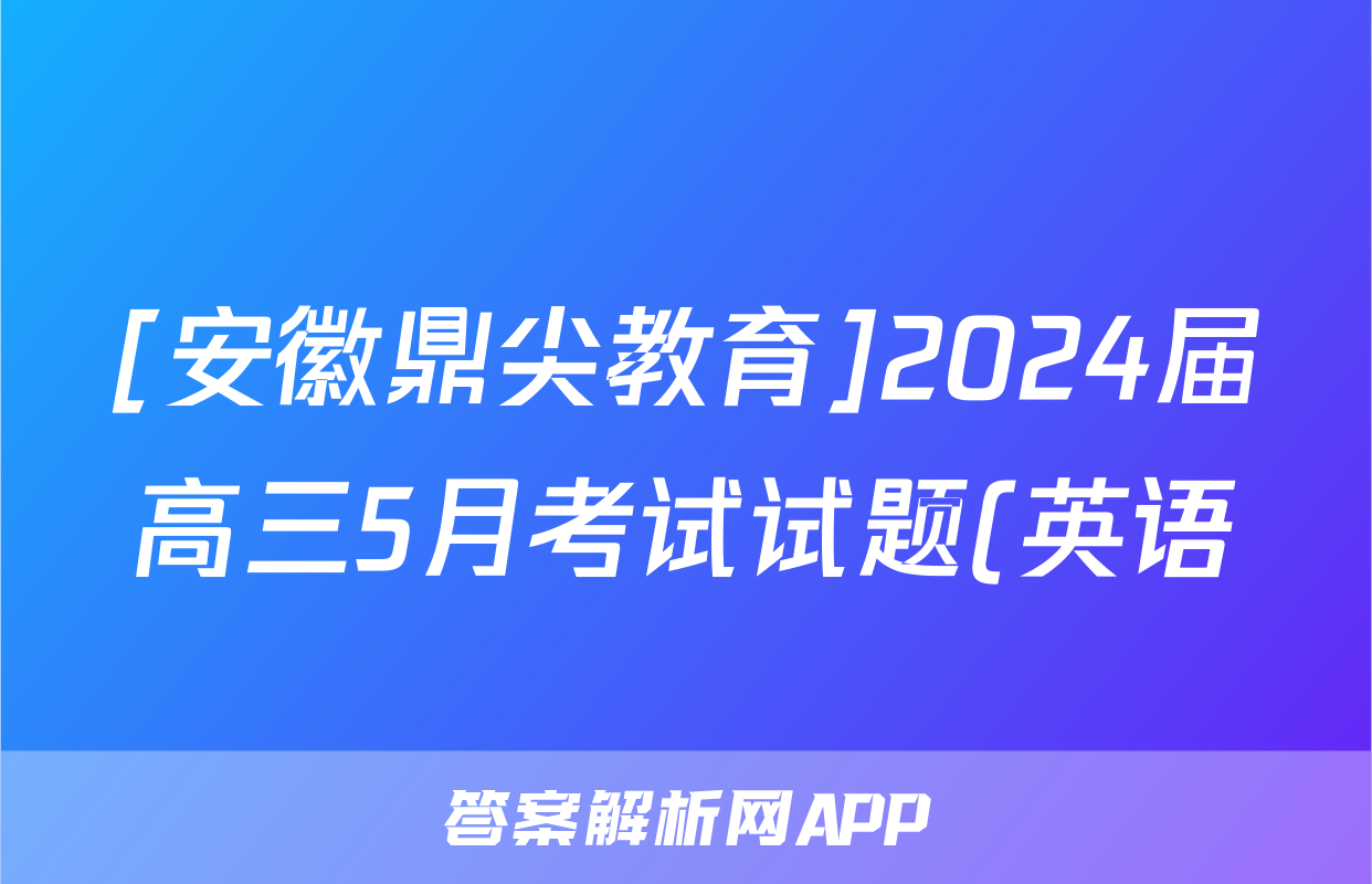 [安徽鼎尖教育]2024届高三5月考试试题(英语)正在持续更新,目前2025衡水名师卷答案网为大家整理了相关试题及答案,供大家查缺补漏,高效提升成绩。