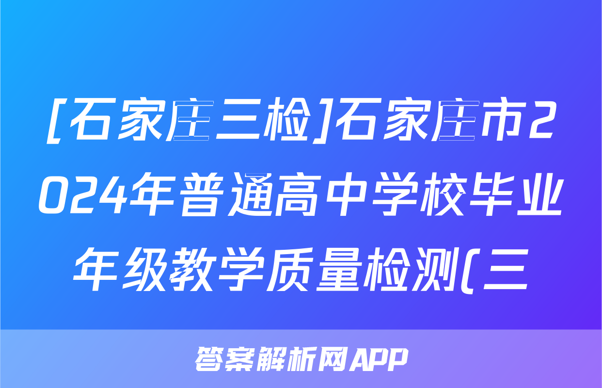 [石家庄三检]石家庄市2024年普通高中学校毕业年级教学质量检测(三)3答案(生物)正在持续更新,目前2025衡水名师卷答案网为大家整理了相关试题及答案,供大家查缺补漏,高效提升成绩。