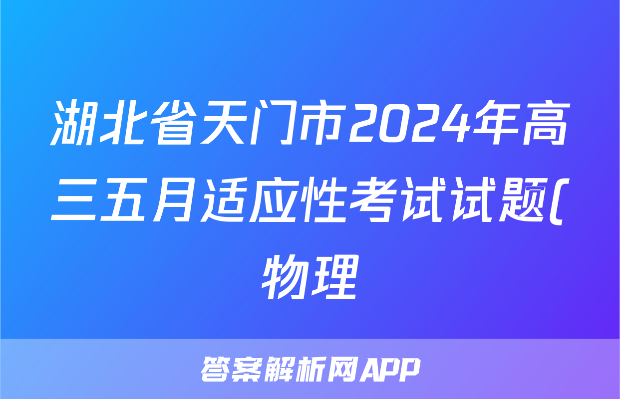 湖北省天门市2024年高三五月适应性考试试题(物理)正在持续更新,目前2025衡水名师卷答案网为大家整理了相关试题及答案,供大家查缺补漏,高效提升成绩。