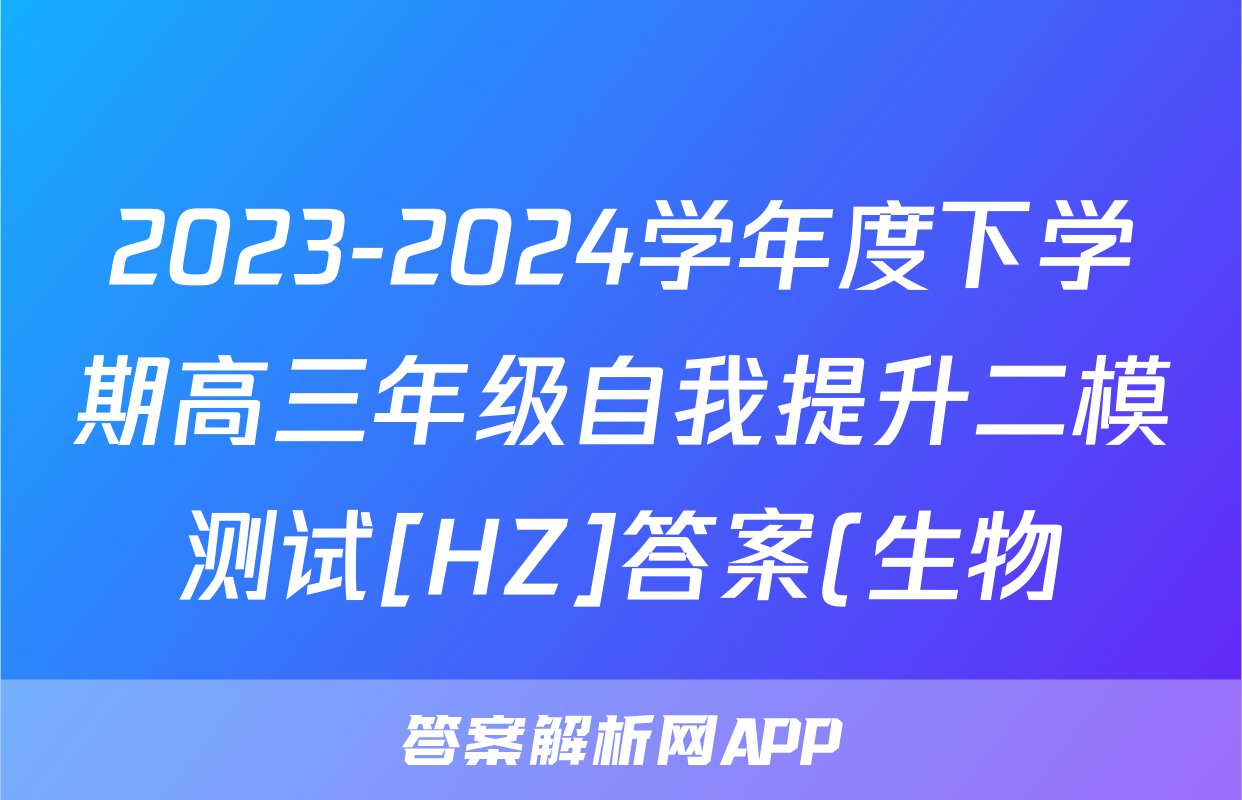 2023-2024学年度下学期高三年级自我提升二模测试[HZ]答案(生物)正在持续更新,目前2025衡水名师卷答案网为大家整理了相关试题及答案,供大家查缺补漏,高效提升成绩。