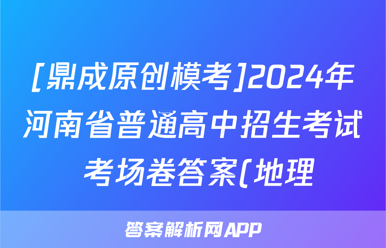 [鼎成原创模考]2024年河南省普通高中招生考试 考场卷答案(地理)正在持续更新,目前2025衡水名师卷答案网为大家整理了相关试题及答案,供大家查缺补漏,高效提升成绩。