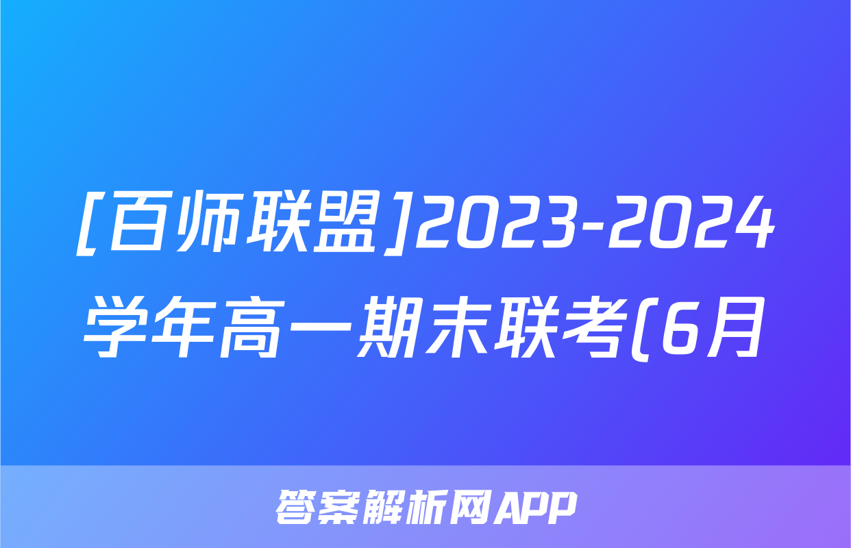 [百师联盟]2023-2024学年高一期末联考(6月)试题(化学)正在持续更新,目前2025衡水名师卷答案网为大家整理了相关试题及答案,供大家查缺补漏,高效提升成绩。