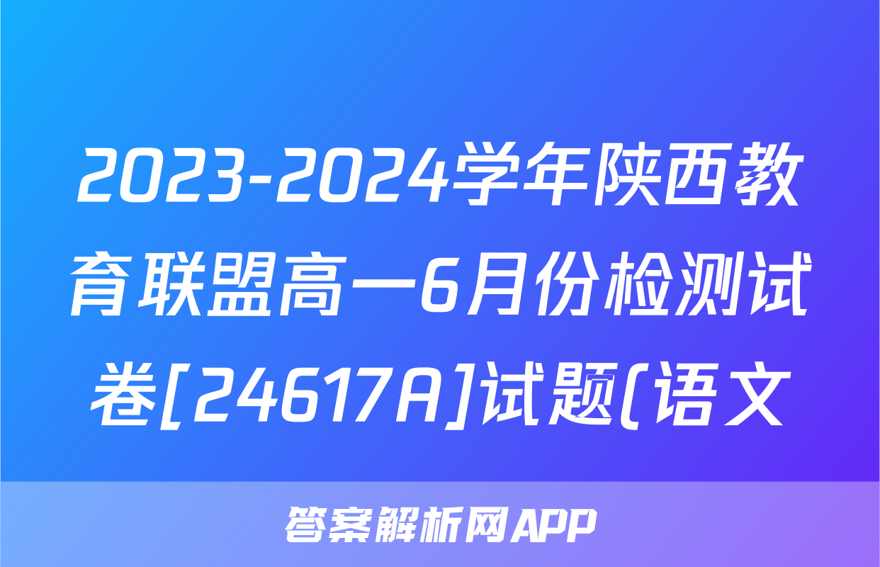2023-2024学年陕西教育联盟高一6月份检测试卷[24617A]试题(语文)正在持续更新,目前2025衡水名师卷答案网为大家整理了相关试题及答案,供大家查缺补漏,高效提升成绩。