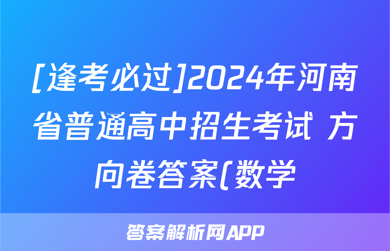 [逢考必过]2024年河南省普通高中招生考试 方向卷答案(数学)正在持续更新,目前2025衡水名师卷答案网为大家整理了相关试题及答案,供大家查缺补漏,高效提升成绩。