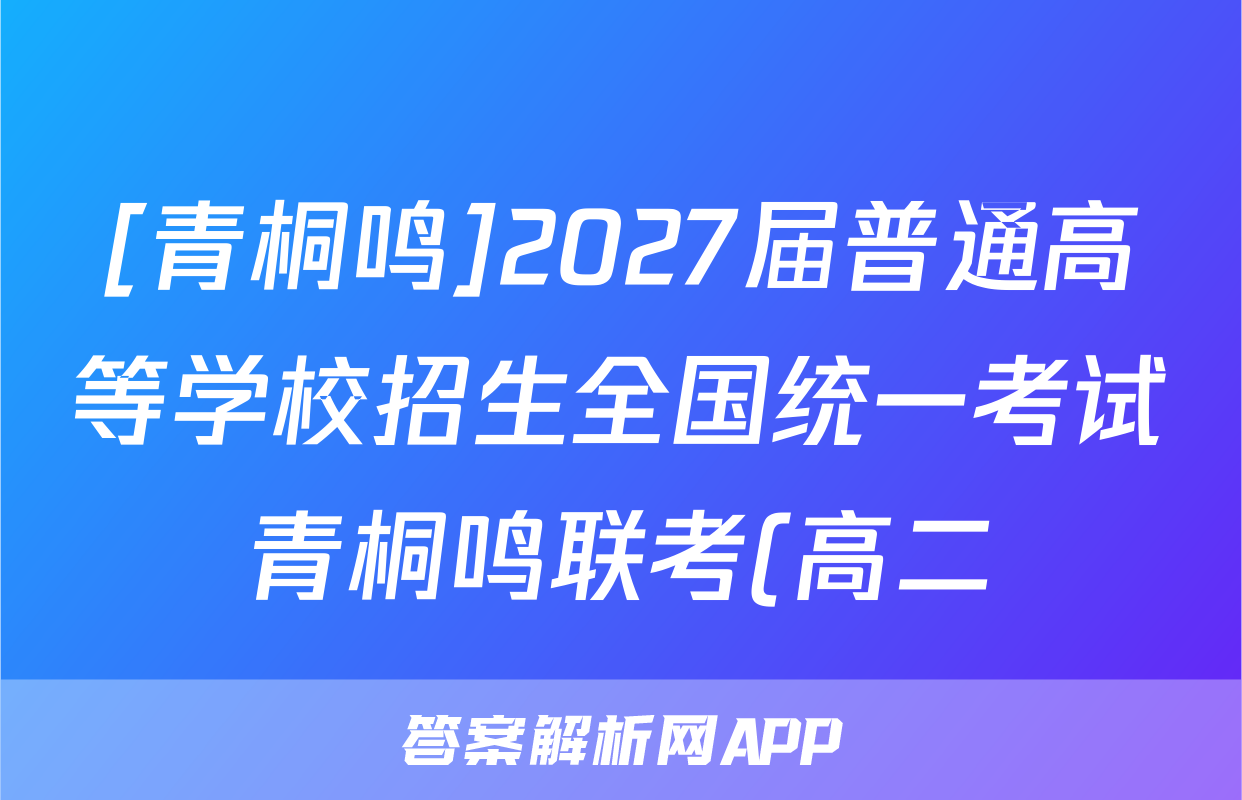 [青桐鸣]2027届普通高等学校招生全国统一考试青桐鸣联考(高二)(10月)化学试题正在持续更新,目前2025衡水名师卷答案网为大家整理了相关试题及答案,供大家查缺补漏,高效提升成绩。